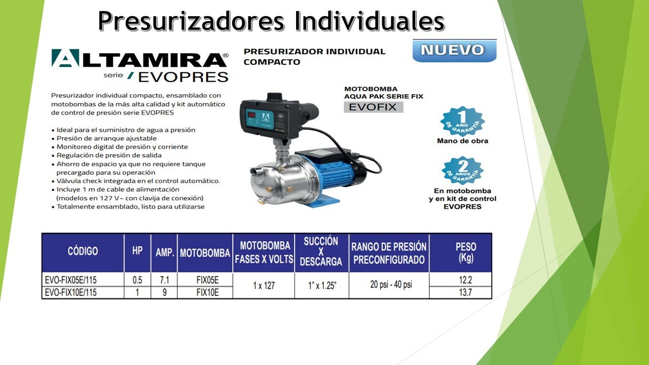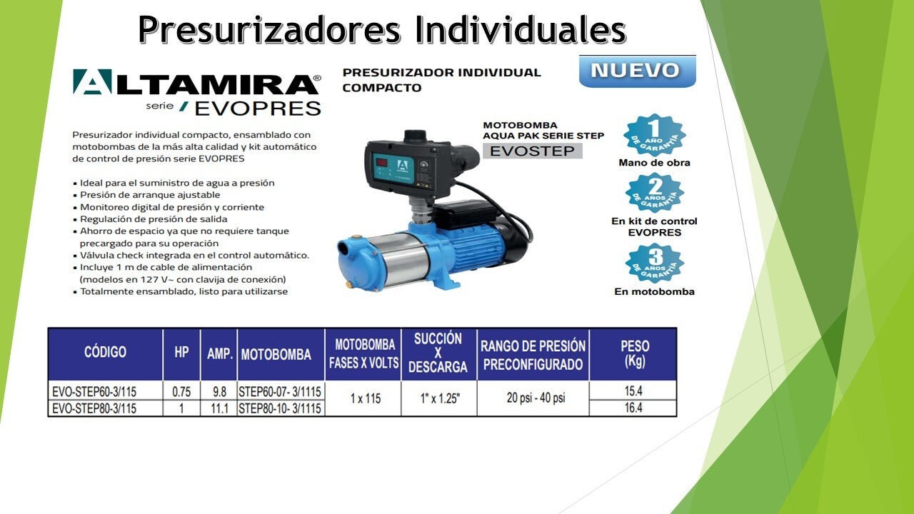 Compensación de baja presión: Es una solución eficiente para instalaciones donde la presión de la red pública o del almacenamiento (como un tinaco) es insuficiente.